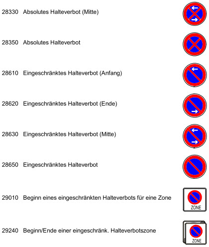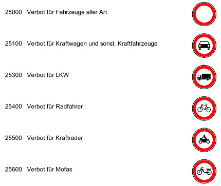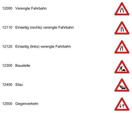 Beispiele für Symboldarstellungen aus dem Verkehrsschilder-Artenkatalog.