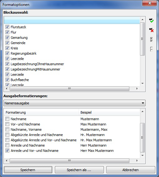 Jede einzelne Textinformation ist vor der Listenausgabe oder Beschriftung inhaltlich noch einmal individuell bearbeitbar. Wir unterstützen Sie mit vorgefertigten Ausgabeformatierungen z.B. bei der Namensausgabe oder beim Geburtsdatum.